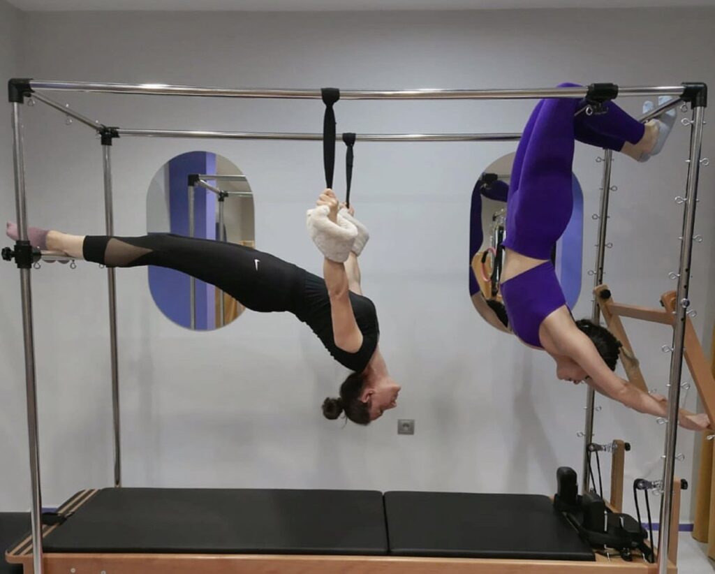 Düet pilates derslerinde, iki kişi Eğitmen eşliğinde birlikte çalışarak motivasyon ve keyifli bir deneyim yaşar.
